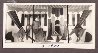 改革开放以前,商店的橱窗多为自行设计展陈,由于当时商品匮乏,橱窗的陈设也比较单一。上世纪70年代末,第一百货开始探索将橱窗“租”出去,让厂家来布置自己的“展台”。不久,上海生产出了新型化纤布料名为的确良,因其结实耐用、不易变形、易洗快干的特点广受追捧,而由其制作成的成衣开始频频出现在橱窗中。