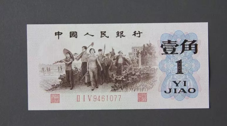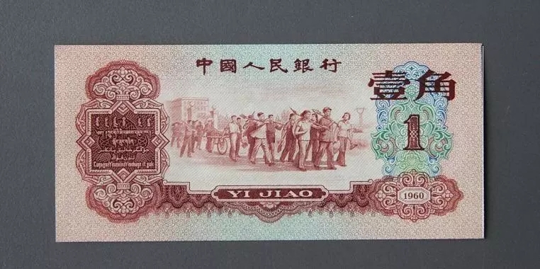 可是没过多久,这张1角券却从人们的生活中消失了。坊间盛传,枣红色1角券画面里的人物全都自左向右行进,这在“左右路线”之争甚嚣尘上的岁月里,疑似犯了“右倾”错误,罪名不轻啊。很快,枣红色1角券被银行逐步回收销毁,而因背面的墨绿色菊花图案而得名的“背绿1角券”临危受命,取而代之,匆忙进入流通领域。新版1角券上的人物统统转换行走方向,改为自右向左,才算平息了沸沸扬扬的社会议论。岂料背绿1角券也是命运多舛,由于设计上的致命失误,新券与已经发行的2角券背面颜色极为相似,老百姓在使用过程中稍有不慎,很容易混淆受损。公安部门就接到商家报案,有人故意拿背绿1角券充当2角券消费,一定程度上扰乱了金融市场秩序。于是乎,背绿1角券仅仅“露脸”14个月,即被央行召回,成为人民币历史上流通时间最短的纸币。