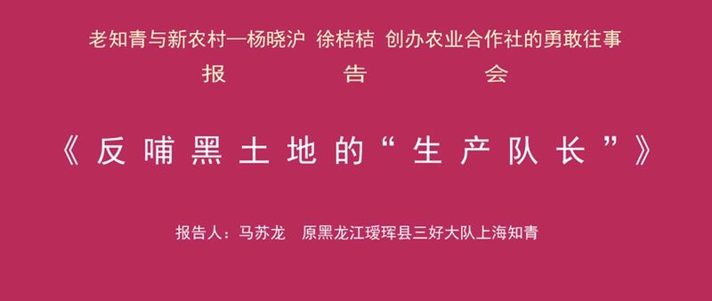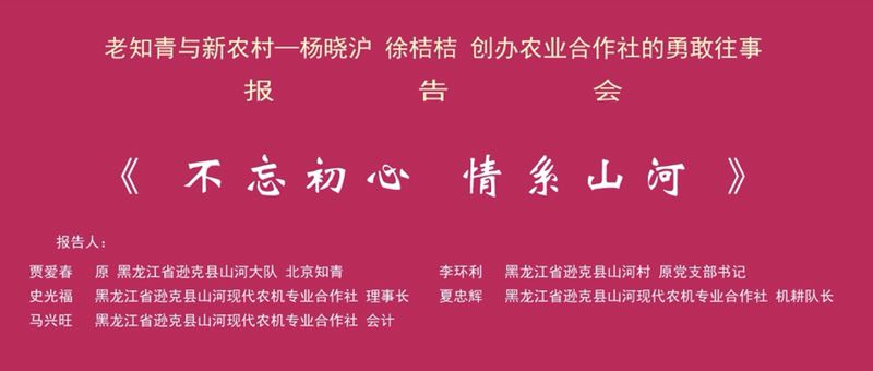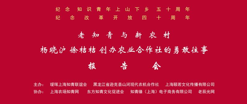 报告会由上海瑷珲知青联谊会、黑龙江逊克县山河村现代农机合作社和上海颐若文化传播有限公司共同主办。