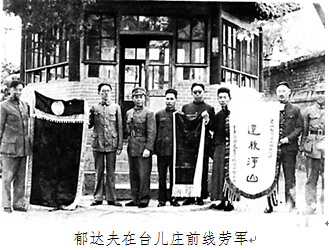 左联发起人之一郁达夫也挺身而出,以自己的一支笔,号召民众抗战。他提出只要“持久抗战”,则“区区倭寇何难一鼓荡平”。在47天内,发表作品达20篇。7月27日,郁达夫去上海迎接自日本回国抗战的郭沫若,恰逢“八·一三”事变,目睹日本侵略者暴行,并由此撰写了报告文学作品《全面抗战的线后》发表在《闽政公余合刊》“战地写真”专栏。