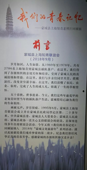 举办这次《我们的青春记忆——蒙城县上海知青老照片回顾展》,不仅是为了触摸历史,更是为了面向未来。