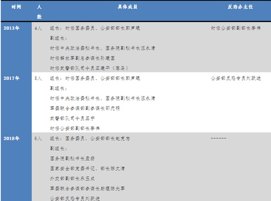一个趋势是,近几年来,国家反恐怖工作领导小组不断"扩容"。