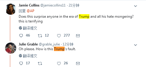 还有人表示:“在特朗普的时代,还有他传播的仇恨中,这种事情还让人奇怪么?真可怕。”