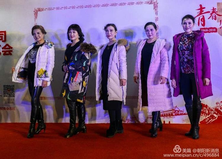 知青模特队穿着惠罗公司的羽绒服走秀开始了。