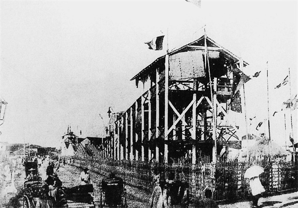 这里还是演放焰火的地方。1885年以后,演放焰火是张园一大项目,几乎无年无之,有时一年不止一次。著名的潮州焰火、东莞焰火、高易焰火、安徽焰火,以及东洋焰火,都在这里演放。比如,1886年8月14日、15日,高易筹赈公所在张园演放焰火,筹款助赈,门票3角。1894年4月29日,放焰火,门票2角。1896年9月,放潮州焰火,有汾阳执笛、大蟹横行、满天珠露、火树银花、四夷电转、鲤鱼逐浪、花鹿奔驰、招财进宝、珠灯献瑞、宝塔玲珑等名目。1897年10月,放东莞焰火,“焰火灵变奇巧,色色翻新,五色迷离,观者无不目迷心醉”。每放焰火,张园必人山人海。《申报》曾描述过1886年5月1日张园放焰火的盛况: