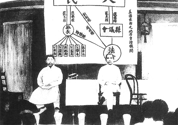 1916年7月17日,孙中山在张园演讲《地方自治》(左为黄兴,右为孙中山)