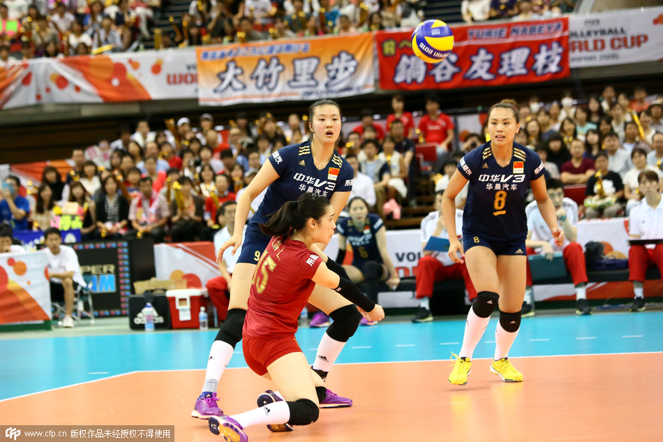 北京时间9月6日,2015年女排世界杯最后一轮,中国队迎来东道主日本队。最终中国队在一传、拦网都遭遇到考验的情况下,以3-1(25-17、22-25、25-21和25-22)的比分力克对手,10胜1平积30分的成绩时隔12年再次夺冠,成就世界杯赛场的四冠王。这也是中国女排时隔11年再次夺得世界冠军,郎平作为教练首次登顶“三大赛”。中国队和塞尔维亚队携手获得了明年里约奥运会的门票。
