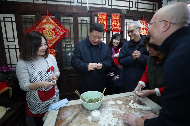 对家家户户的生活,他很放在心上。每逢新春佳节,他都会走到群众中间。今年春节前夕,习近平来到北京前门东区朱茂锦家。一家人正在包饺子,总书记加入其中,边包饺子边聊家常,询问他们日子过得怎么样、水电气暖条件有没有改善、年货备齐没有。他还特意走进快递服务点和小吃店,看望仍在工作的“快递小哥”等劳动者,了解他们工作和生活情况。