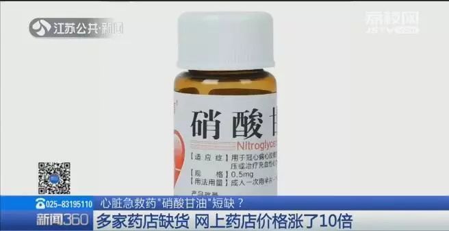 1月24日,江苏新闻实地采访了南京各大药店,发现 心绞痛患者常用药"硝酸甘油片"很难买到,只有一家药店有售,售价10元。该药房工作人员称,即使是10元一盒的硝酸甘油片,也没多少存货。