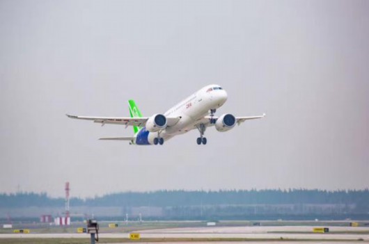 2017年5月5日,国产大飞机C919从上海浦东机场成功首飞。澎湃新闻记者是冬冬图