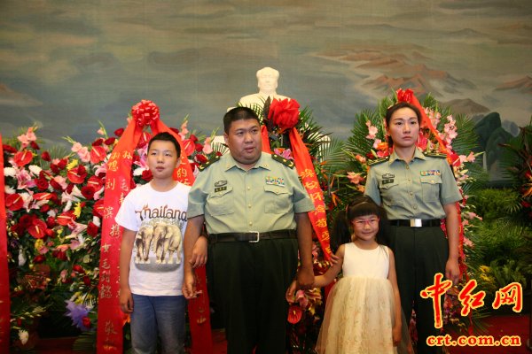 毛新宇将军(右二)一家与毛主席身边工作人员张玉凤(右一)、爱人刘爱民(左一)在毛主席纪念堂合影留念。(中红网李学叶摄)