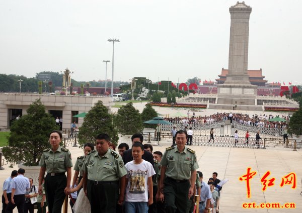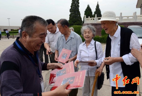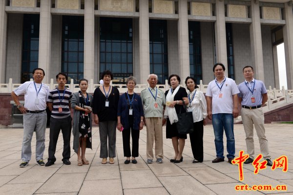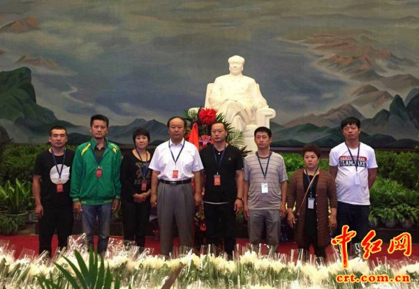 毛主席身边工作人员赵延河(右五)、人民大会堂118厅服务员张善兰(右六)等来到毛主席纪念堂。(中红网江山摄)