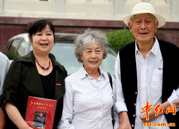 毛主席侄女毛小青(左)和毛主席身边工作人员张玉凤(中)、王笃恭(右)在毛主席纪念堂合影留念。(中红网李学叶摄)