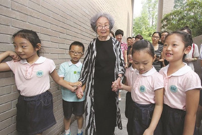 2016年教师节,南开大学幼儿园的小朋友们来到叶嘉莹先生的处所迦陵学舍送祝福。