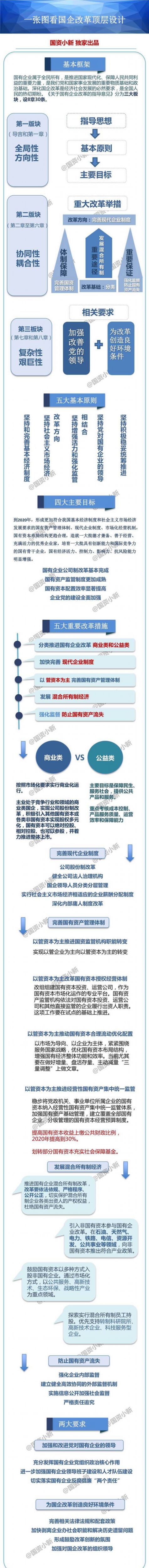到2020年,在国有企业改革重要领域和关键环节取得决定性成果,形成更加符合我国基本经济制度和社会主义市场经济发展要求的国有资产管理体制、现代企业制度、市场化经营机制,国有资本布局结构更趋合理,造就一大批德才兼备、善于经营、充满活力的优秀企业家,培育一大批具有创新能力和国际竞争力的国有骨干企业,国有经济活力、控制力、影响力、抗风险能力明显增强。