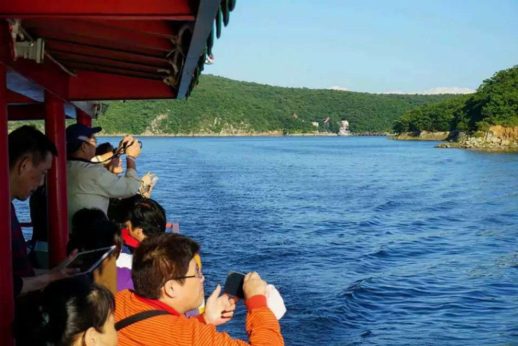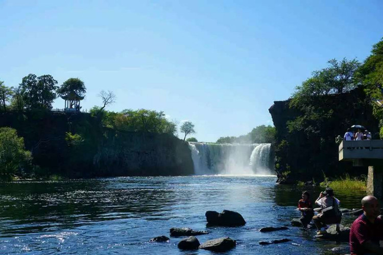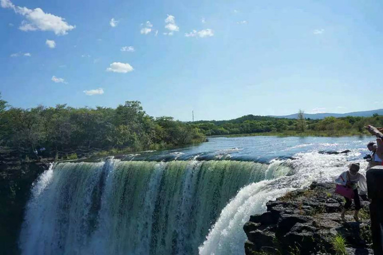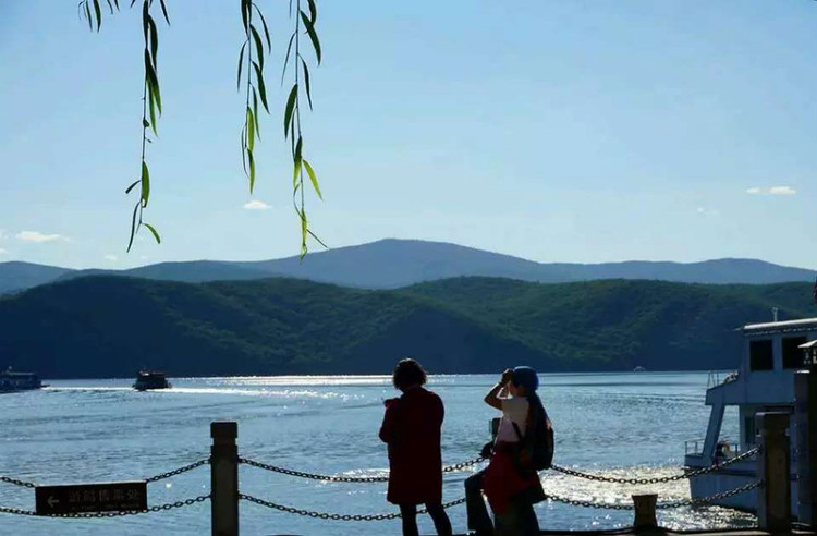 照片来自微信,除第1张、在杨子荣烈士纪念碑前;第2张、在杨子荣纪念碑位置看海林县;第3张、渤海国遗址附近的稻田;最后二张张、与在瀑布上跳水的吉尼斯记录保持者握手合影外,其余照片都是在牡丹江镜泊湖。