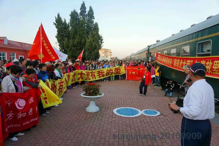 照片来自孙钜江微信: 《醉美北大荒,知青专列游》9月5日下午从上海出发后,线路如下:上海-哈尔滨-牡丹江-密山-虎林-红兴隆-抚远-建三江(-同江-雁窝岛等)-佳木斯-哈尔滨-山海关-上海。