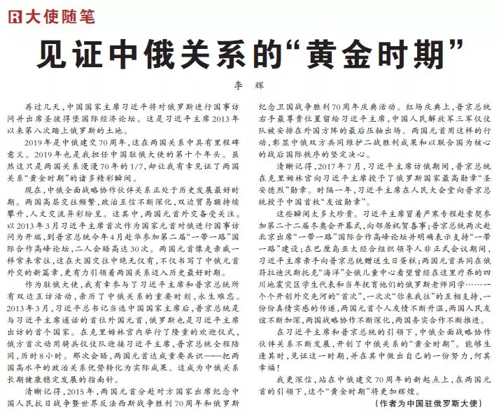 见证中俄关系的“黄金时期”(大使随笔)