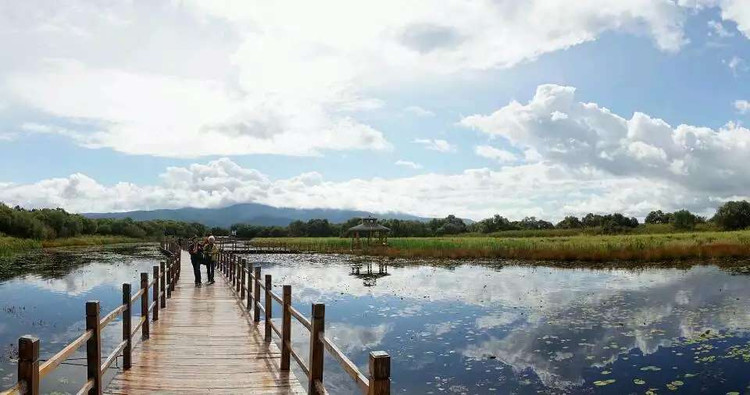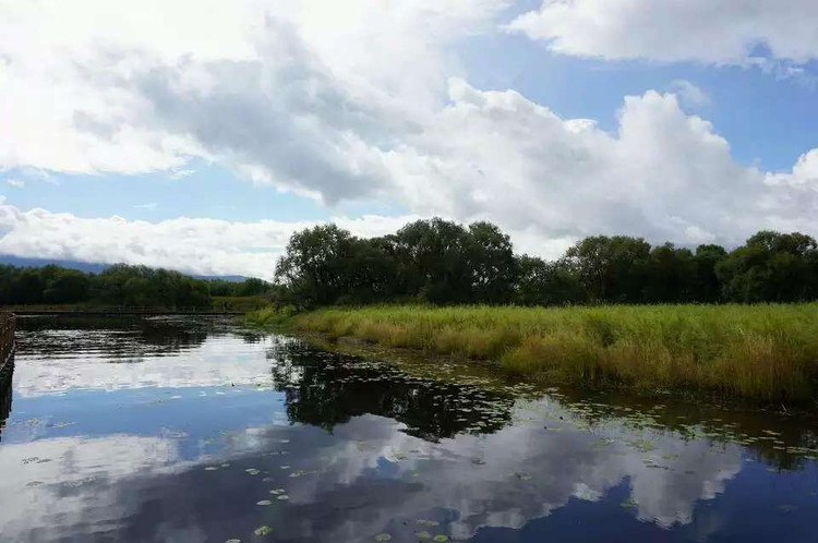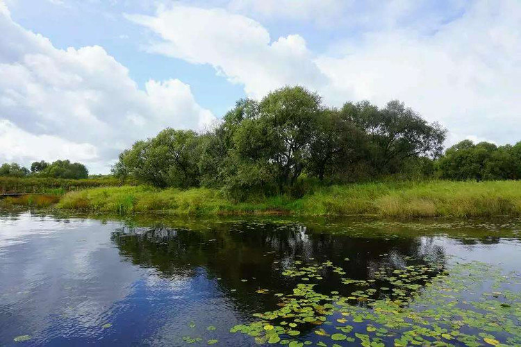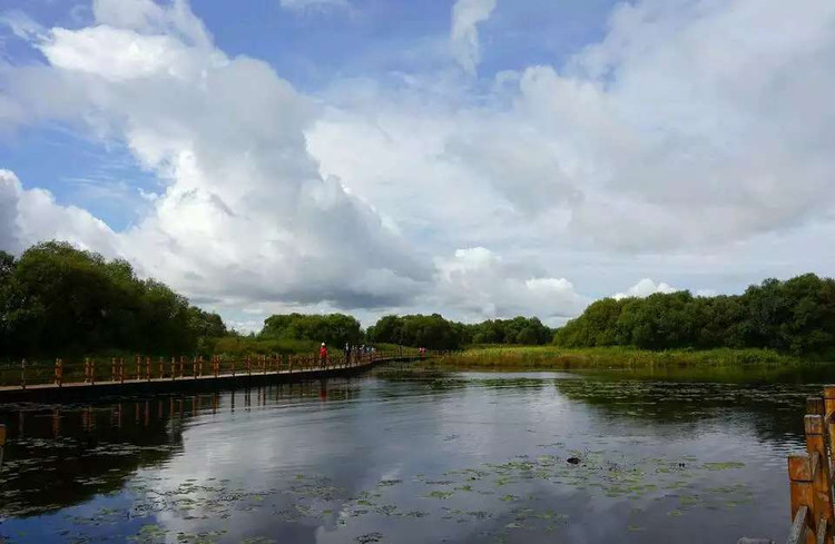 参观黑瞎子岛上的湿地公园。那天一大早天空还是乌云密布,大家撑伞冒雨游览。当我们来到湿地公园时天空放晴,蓝天上漂着朵朵白云,好象是老天爷专门为我们安排似的。到了这里才真正体会到什么是醉美北大荒。第7张照片说明:这是1929年黑瞎子岛被苏联占领后建造的一个军营的仓库。(在湿地旁)