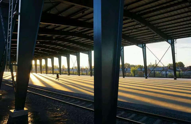 1、专列到达建三江车站,太阳刚升起,站台上洒满了金黄色的阳光