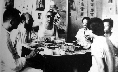 1947年,田汉(左三)与洪深、熊佛西、茅盾、于立群等在一起
