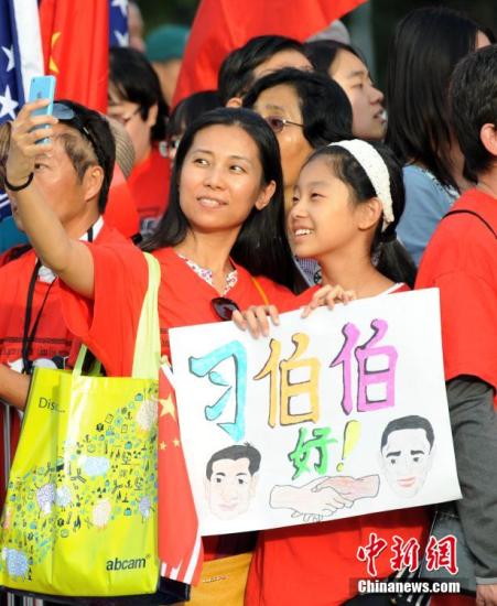 当地时间9月24日,美国大华府地区数千名华侨华人聚集在华盛顿,挥舞着中美两国国旗,通过敲锣打鼓、舞龙舞狮、唱经典歌曲等多种方式热烈欢迎中国国家主席习近平对华盛顿进行访问。