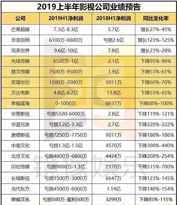 观众缩水九千万之余,更有7家A股影视公司2019年净利润预计最高下降不少于100%。