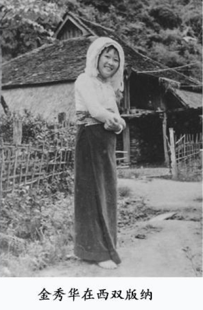 但庆幸的是我们连队和傣族寨子相连,傣族同胞热情好客,我们也常去傣家走动,与寨子里的姑娘们成了好朋友。我们还搞过几次联欢活动,多少填补一些我们知青生活的枯燥。这张在吊脚楼前的照片,就是我们到傣寨进行联欢活动时的留影。记得那时,有一傣家,新娘刚过门,我们一群知青跑去看新娘子,见到新娘的傣族服装非常鲜艳,真是太漂亮了,是我们汉族姑娘想都想不到的美丽。看到那身服饰,真羡慕死了,真想当一回傣族女孩,我忍不住向那位傣家新娘借来穿上试试。傣家人好客,新娘十分大方地帮我穿戴整齐。我溜溜地转着圈,左看看,右看看,姐妹们围着拍手叫好,心里简直美极了。正巧那天有战友带了相机拍联欢活动,同去的姐妹就跑去叫了过来,为我留下这张光彩照人的相片。遗憾的是那时只有黑白胶片,还没有彩色的,那艳丽的色彩只能深深地印在我的心里,出现在我的梦里了。