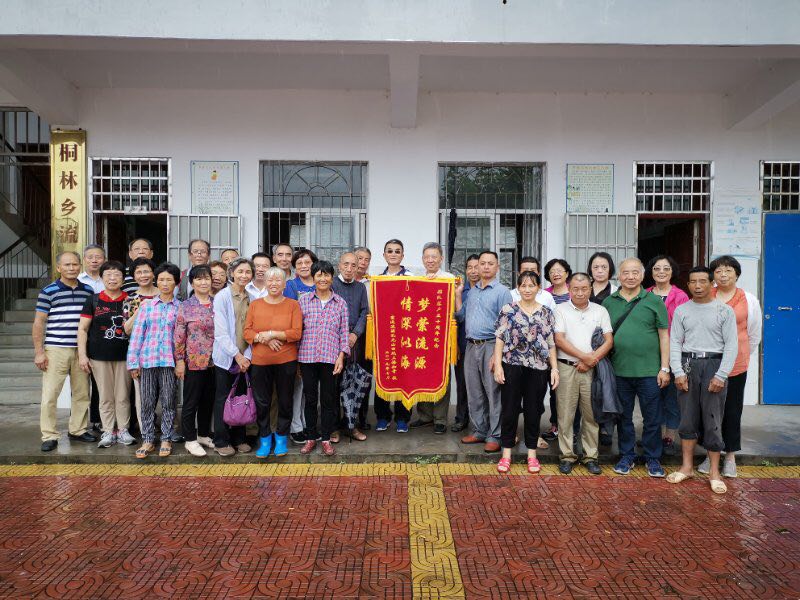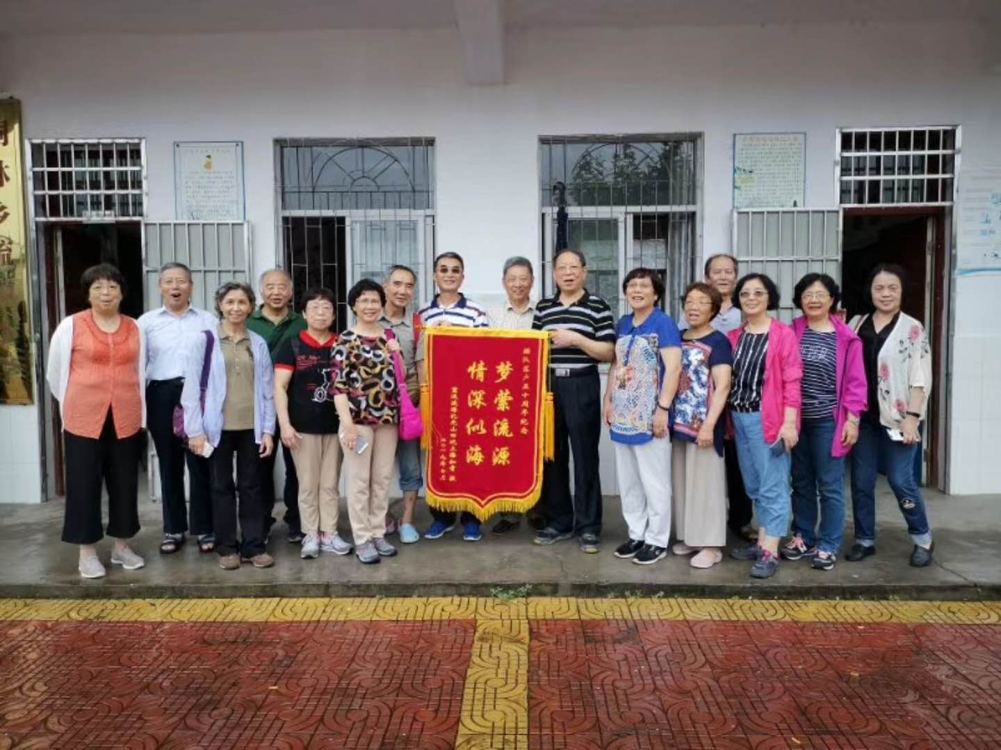 (说明 :上海赴江西峡江县桐林乡流源村知青、原上海外国语大学常务副校长谭晶华及流源知青十余人,在下乡五十周年以后,重返流源小学,探望乡亲,捐书捐资,受到学校师生热烈欢迎。)