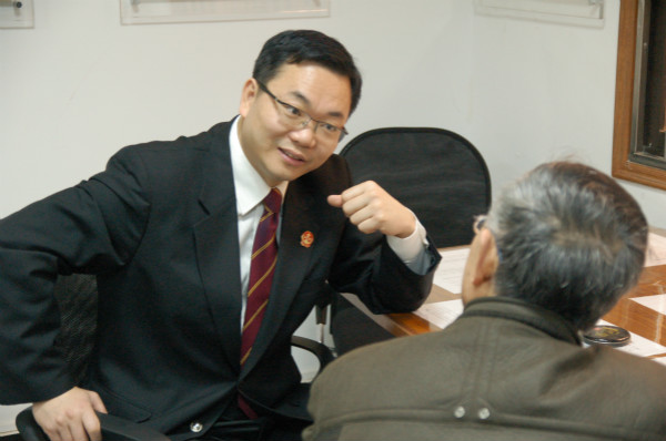 图说:邹碧华接待诉讼当事人。上海市高级人民法院供图(下同)
