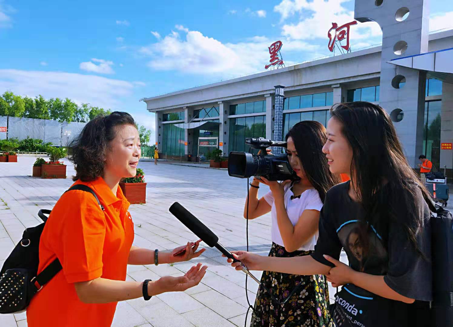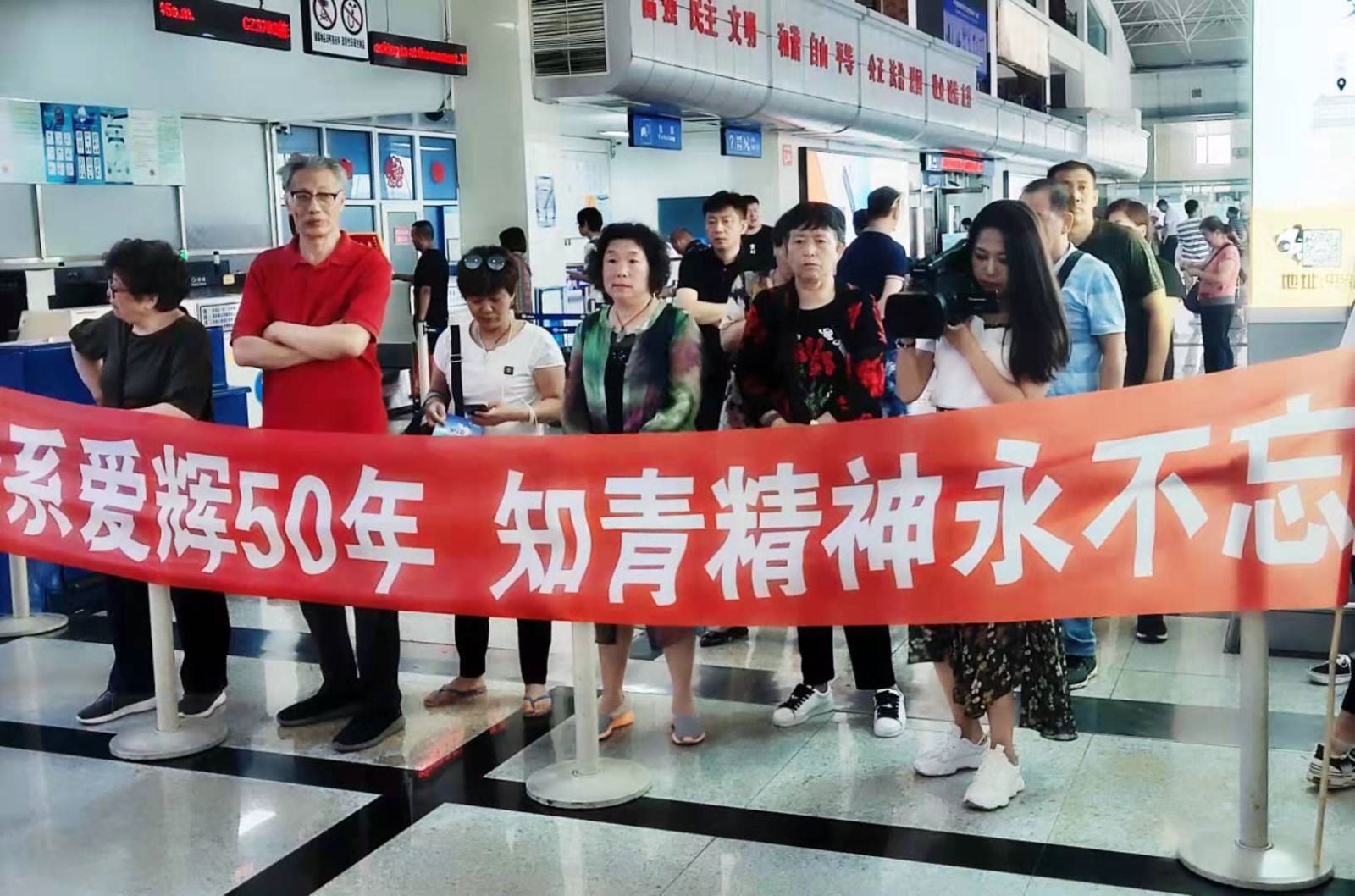 7月22日下午,由黄建华带领的《那份不了情》剧组成员,搭乘哈尔滨至黑河的MU5613航班到达黑河机场,同机到达的还有张刚及其他知青朋友共50余人。爱辉区文联主席杨涛、知青博物馆馆长杨贺军、爱辉电视台记者,以及先期到达的老知青和当地老乡到机场迎接。