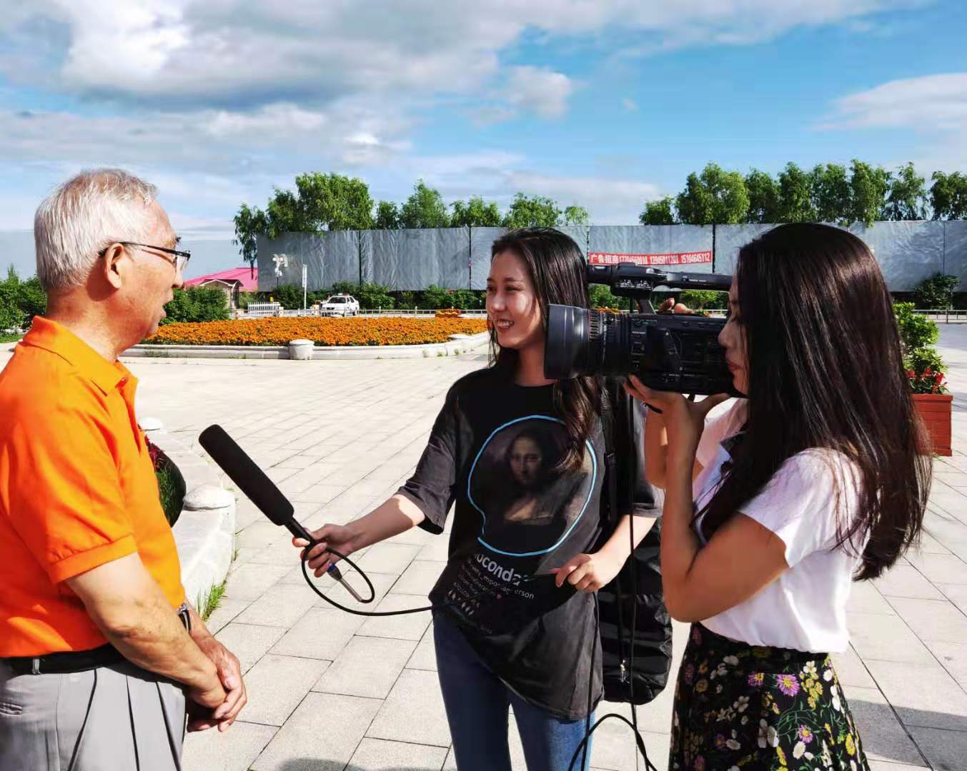 爱辉电视台的记者采访导演严珊。(摄影:杨永生)