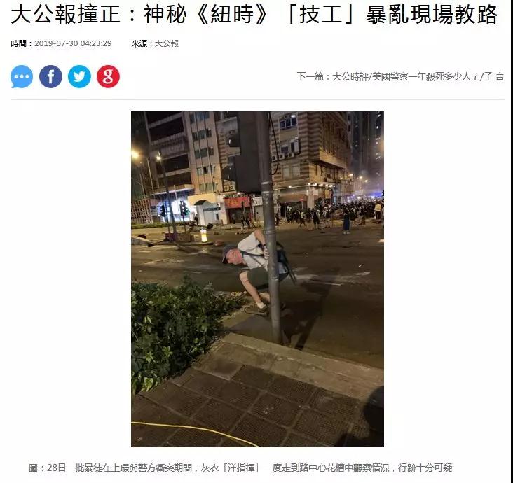 “《纽约时报》神秘技工现身暴乱现场”,香港《大公报》30日称,当一批暴徒28日在上环与警方冲突期间,一名灰衣“洋指挥”一度走到路中心花槽中观察情况,形迹十分可疑。记者用长镜头拍摄到这名“洋指挥”在手机上与另一名外国记者谈论警方的最新动向。当《大公报》在网络上将此事曝光后,《纽约时报》驻香港记者王霜舟在推特上承认,该外国男子为“其办公室的技术经理”。而与后者谈论警方动向的另一外国记者名为Ezra,则是CNN和《纽约时报》的兼职记者,此前曾供职于法新社。从Ezra推特上的内容来看,他参加了28日的示威和暴乱行动。《大公报》回顾,王霜舟自今年6月以来,撰写了18篇香港报道,多批评香港警方和特区政府,对暴徒的违法行为视而不见。