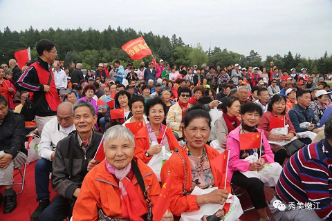 嫩江农场知青纪念碑落成揭幕仪式,在全场合唱《我和我的祖国》歌声中圆满落下帷幕。