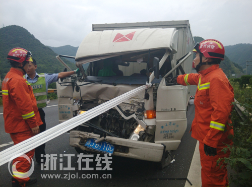 上午10点10分左右,浙江临海消防大队接到报警,称浙江甬台温高速温州方向,燕居岭隧道附近发生车祸,有一辆厢式小货车与前车追尾,一名驾驶员被卡驾驶室内。