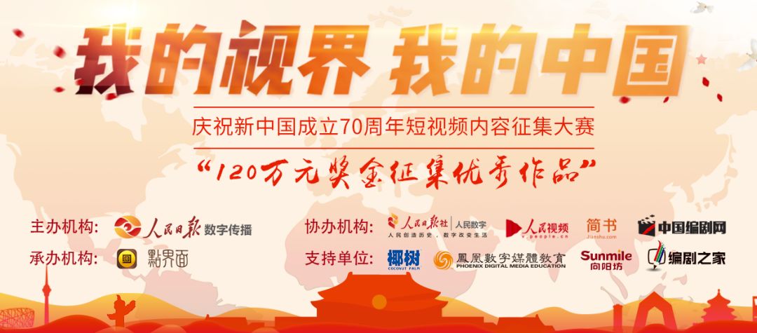 人民日报联合编剧之家举办“我的视界 我的中国”短视频征文大赛,希望大家一起写下你眼中的中国,庆祝新中国成立70周年!