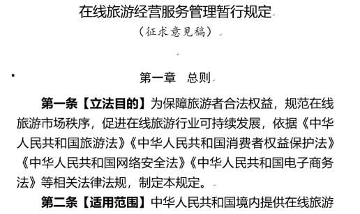 10月9日,文化和旅游部公示了《在线旅游经营服务管理暂行规定(征求意见稿)》,并在未来一个月内面向社会公开征求意见。