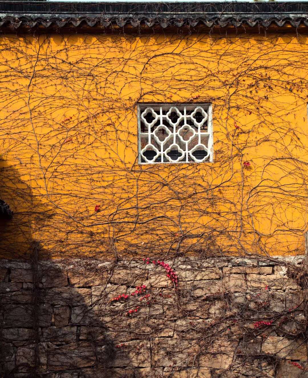 塘的北面,亭台楼阁,错落有致地依傍在山脚下排开,阳光照在布满枯藤的墙面上,仿佛看到的是历史老人脸上的皱褶。