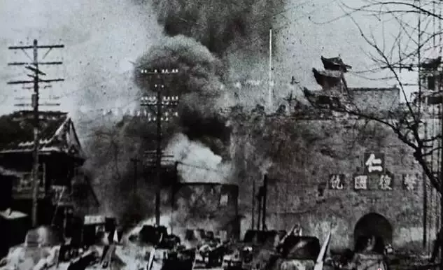 站在城墙上,曹景行与经盛鸿注视着手里一张照片,那是78年前12月17日侵华日军举行的攻占南京入城式。日本军官骑着马,耀武扬威,入的正是中山门。