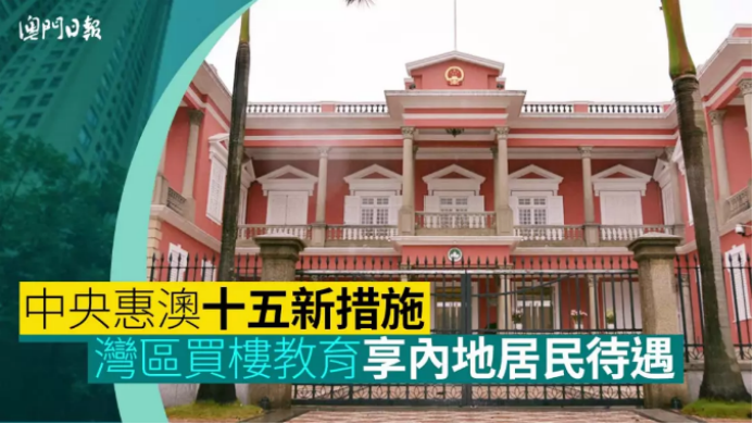 根据《澳门日报》消息, 11月7日下午,中央政府推出15条惠及澳門的政策措施,其中就包括港澳居民在粤港澳大湾区内地城市购房,享有与内地居民同等的待遇。