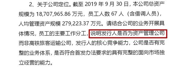 员工仅67人,“巨无霸”京沪高铁被证监会问询:人均管理资产近28亿,是否为资产管理公司?