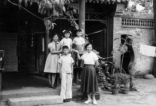 妈妈带秉宜、秉华、秉和、秉建在机织卫胡同庭院内