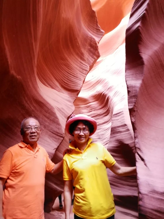 夫妻双影,在神奇岩光衬映下也显得年轻了。