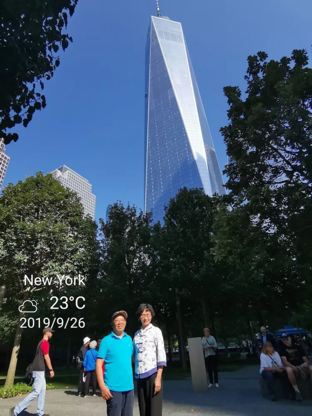 美国人民是可敬佩的,他们在遗址边又新建了一幢比“世贸双子楼”更髙的玻璃幕墙髙楼(99层),直耸云天。