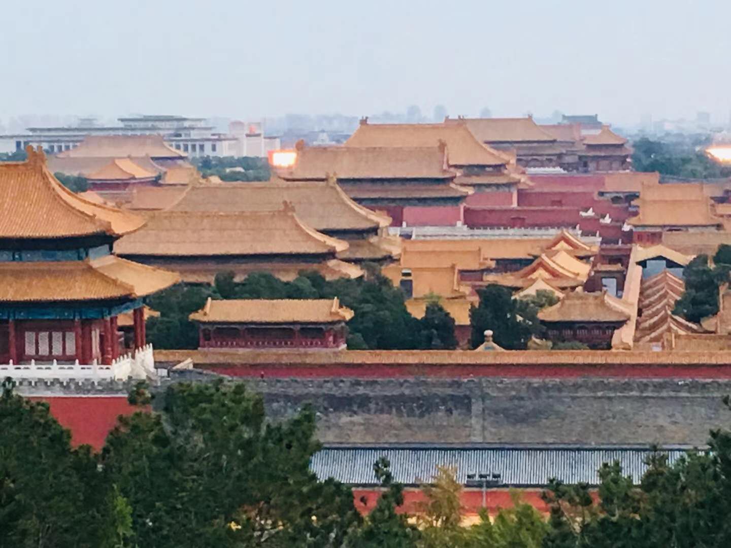 傍晚时分,还想再瞥一眼故宫,就和妻子登上景山,远远望去,一片金黄,巍巍壮观。中国的皇权从这里迈向顶峰,然后又走向消亡。一百多年前,英法联军,八国联军,再到日本鬼子,他们进了北京,却不敢对紫禁城动粗。