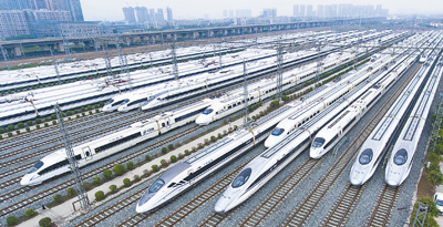 西安动车段存车场,一列列动车组整装待发。 王曙天摄(人民视觉)