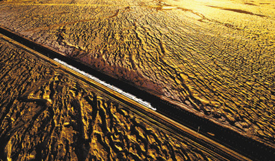 动车穿越敦煌铁路雅丹地貌区。 柳永泉摄(人民视觉)