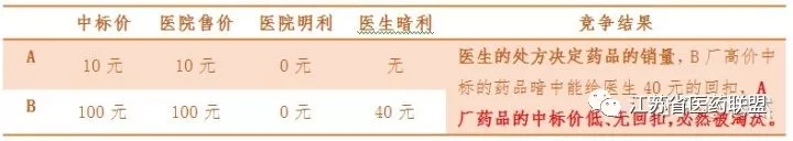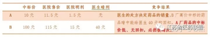由此可见,无论是差价率是15%还是0,药企之间的竞争结果都是“价格虚高有回扣的药品淘汰价格合理无回扣的药品”。为了避免被淘汰的命运,他们不得不开展“高定价、大回扣”的地下交易竞争。