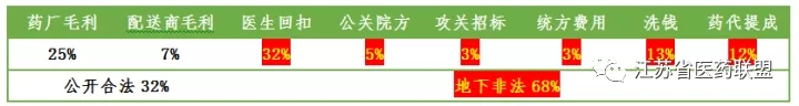 2016年,上海、湖南6家大型公立医院药品中标价虚高600%-1000%,回扣占30%-40%,医药代表提成占10%;
