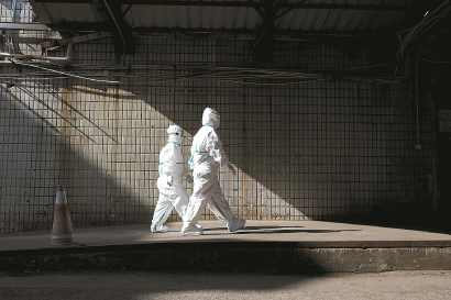 进入污染区前,医护人员麻利地穿上防护服。